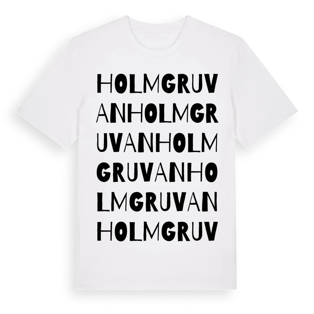 Holmgruvan ordlek t-shirt är inspirerad av byn Holmgruvan i Dalarnas län, Sverige. Tröjan är designad för dig som har en speciell koppling till platsen – oavsett om du bor här, har rötterna här eller bara älskar Holmgruvan.