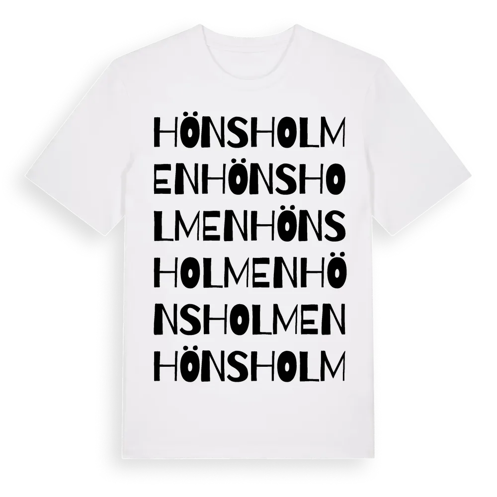 Hönsholmen ordlek t-shirt är inspirerad av Hönsholmen i Dalarnas län, Sverige. Tröjan är designad för dig som har en speciell koppling till platsen – oavsett om du bor här, har rötterna här eller bara älskar Hönsholmen.