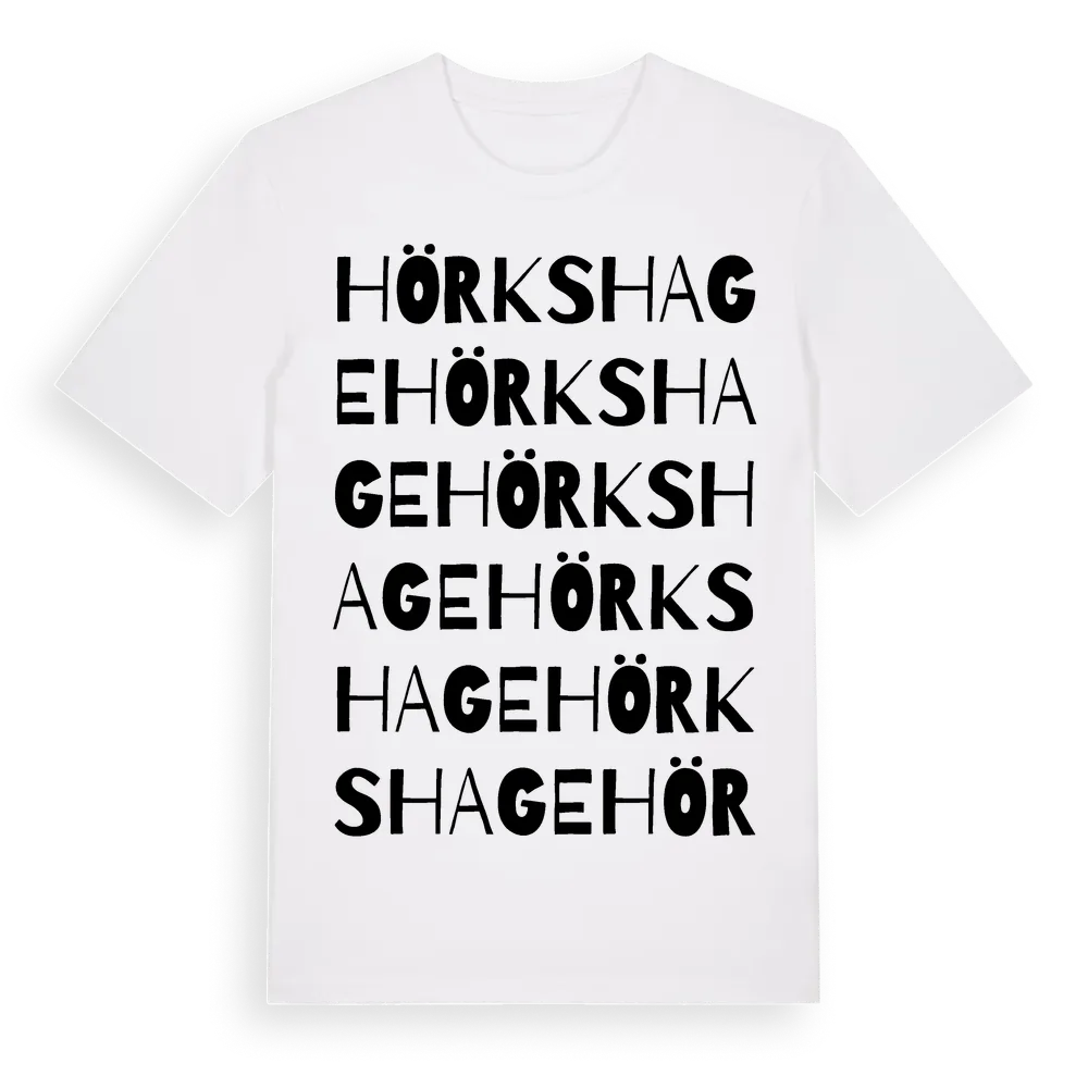 Hörks Hage ordlek t-shirt är inspirerad av byn Hörks Hage i Dalarnas län, Sverige. Tröjan är designad för dig som har en speciell koppling till platsen – oavsett om du bor här, har rötterna här eller bara älskar Hörks Hage.