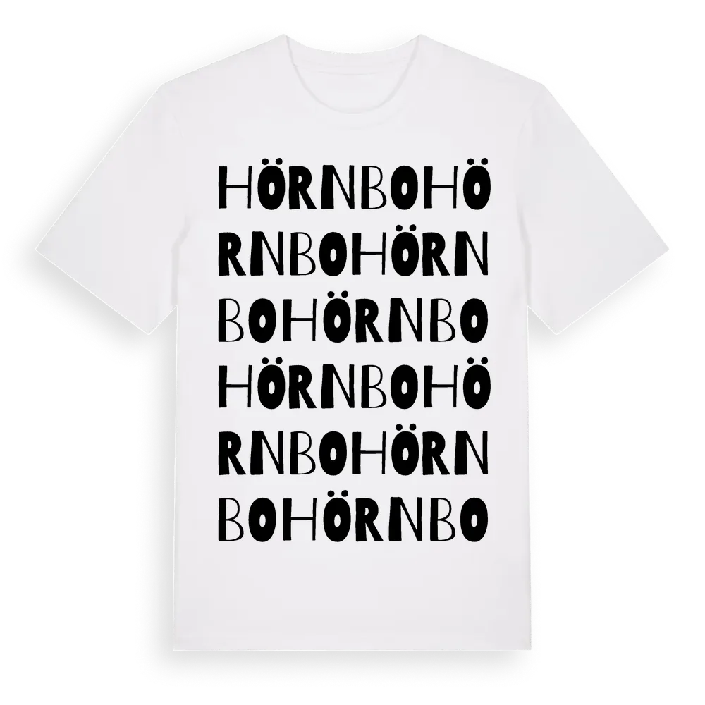 Hörnbo ordlek t-shirt är inspirerad av byn Hörnbo i Dalarnas län, Sverige. Tröjan är designad för dig som har en speciell koppling till platsen – oavsett om du bor här, har rötterna här eller bara älskar Hörnbo.