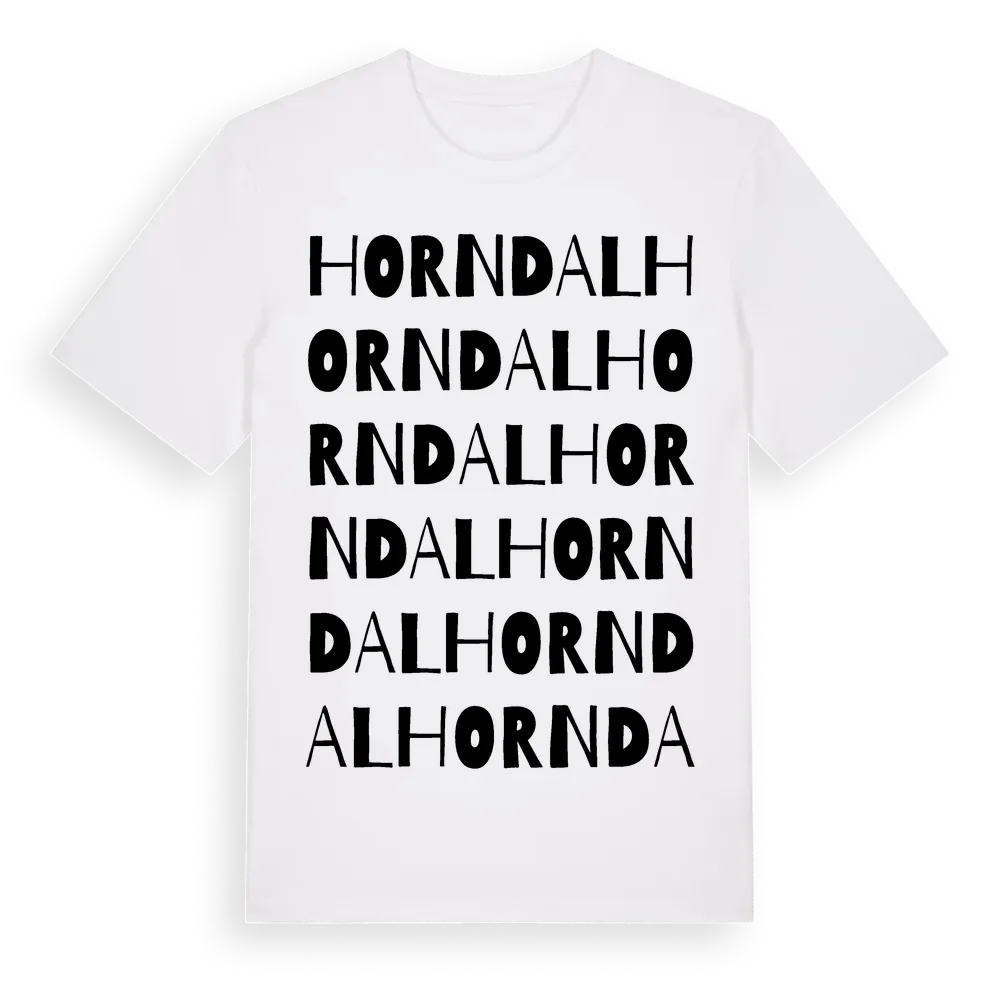 Horndal ordlek t-shirt är inspirerad av byn Horndal i Dalarnas län, Sverige. Tröjan är designad för dig som har en speciell koppling till platsen – oavsett om du bor här, har rötterna här eller bara älskar Horndal.
