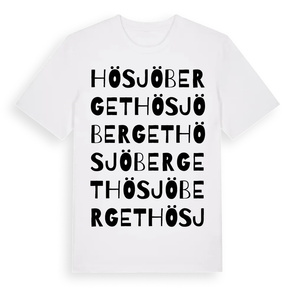 Hösjöberget ordlek t-shirt är inspirerad av Hösjöberget i Dalarnas län, Sverige. Tröjan är designad för dig som har en speciell koppling till platsen – oavsett om du bor här, har rötterna här eller bara älskar Hösjöberget.