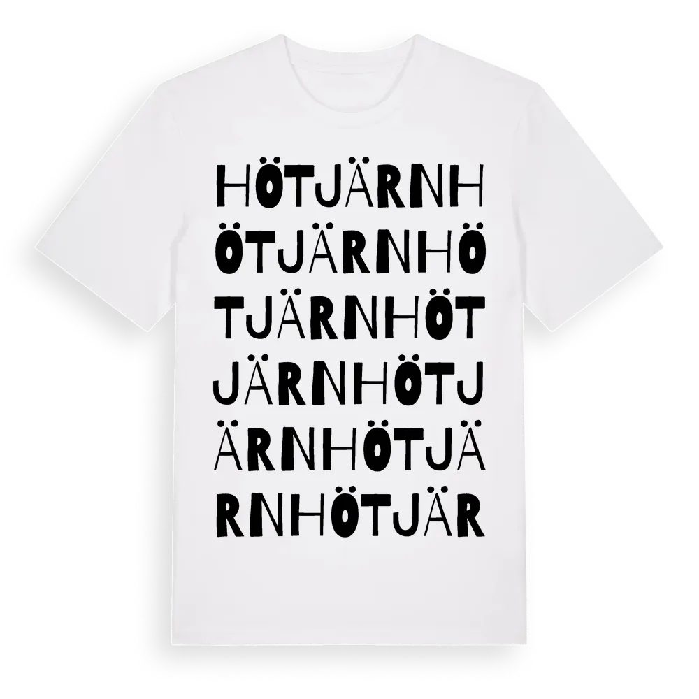 Hötjärn ordlek t-shirt är inspirerad av Hötjärn i Dalarnas län, Sverige. Tröjan är designad för dig som har en speciell koppling till platsen – oavsett om du bor här, har rötterna här eller bara älskar Hötjärn.