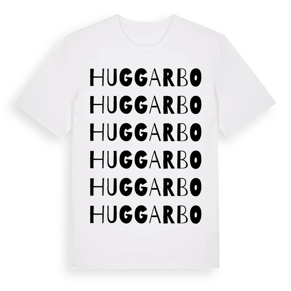 En ordlek byggd på Huggarbos namn. Subtilt och klurig – ett motiv som bara de som verkligen känner platsen fullt ut förstår. Premium bomull, unisex – från Huggarbo i Dalarnas län.