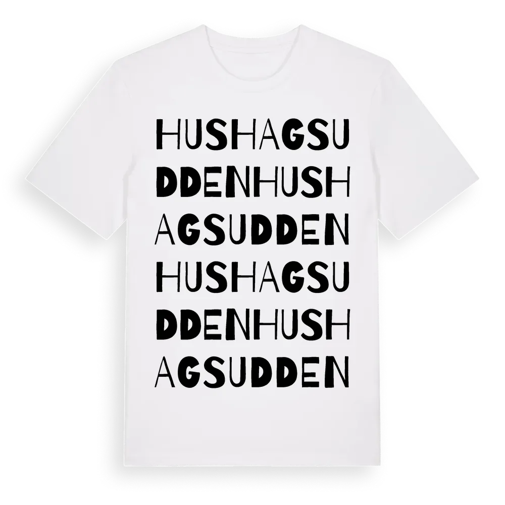 En ordlek byggd på Hushagsuddens namn. Subtilt och klurig – ett motiv som bara de som verkligen känner platsen fullt ut förstår. Premium bomull, unisex – från Hushagsudden i Dalarnas län.