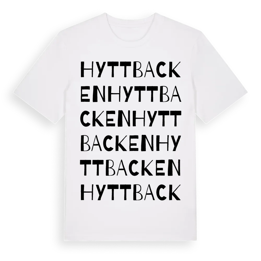 Hyttbacken ordlek t-shirt är inspirerad av Hyttbacken i Dalarnas län, Sverige. Tröjan är designad för dig som har en speciell koppling till platsen – oavsett om du bor här, har rötterna här eller bara älskar Hyttbacken.