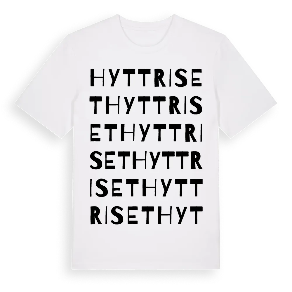 Hyttriset ordlek t-shirt är inspirerad av stadsdelen Hyttriset i Dalarnas län, Sverige. Tröjan är designad för dig som har en speciell koppling till platsen – oavsett om du bor här, har rötterna här eller bara älskar Hyttriset.