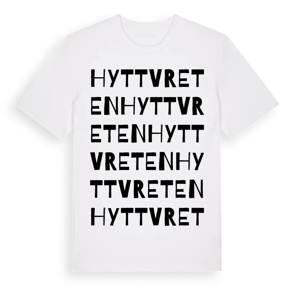 Hyttvreten ordlek t-shirt är inspirerad av Hyttvreten i Dalarnas län, Sverige. Tröjan är designad för dig som har en speciell koppling till platsen – oavsett om du bor här, har rötterna här eller bara älskar Hyttvreten.