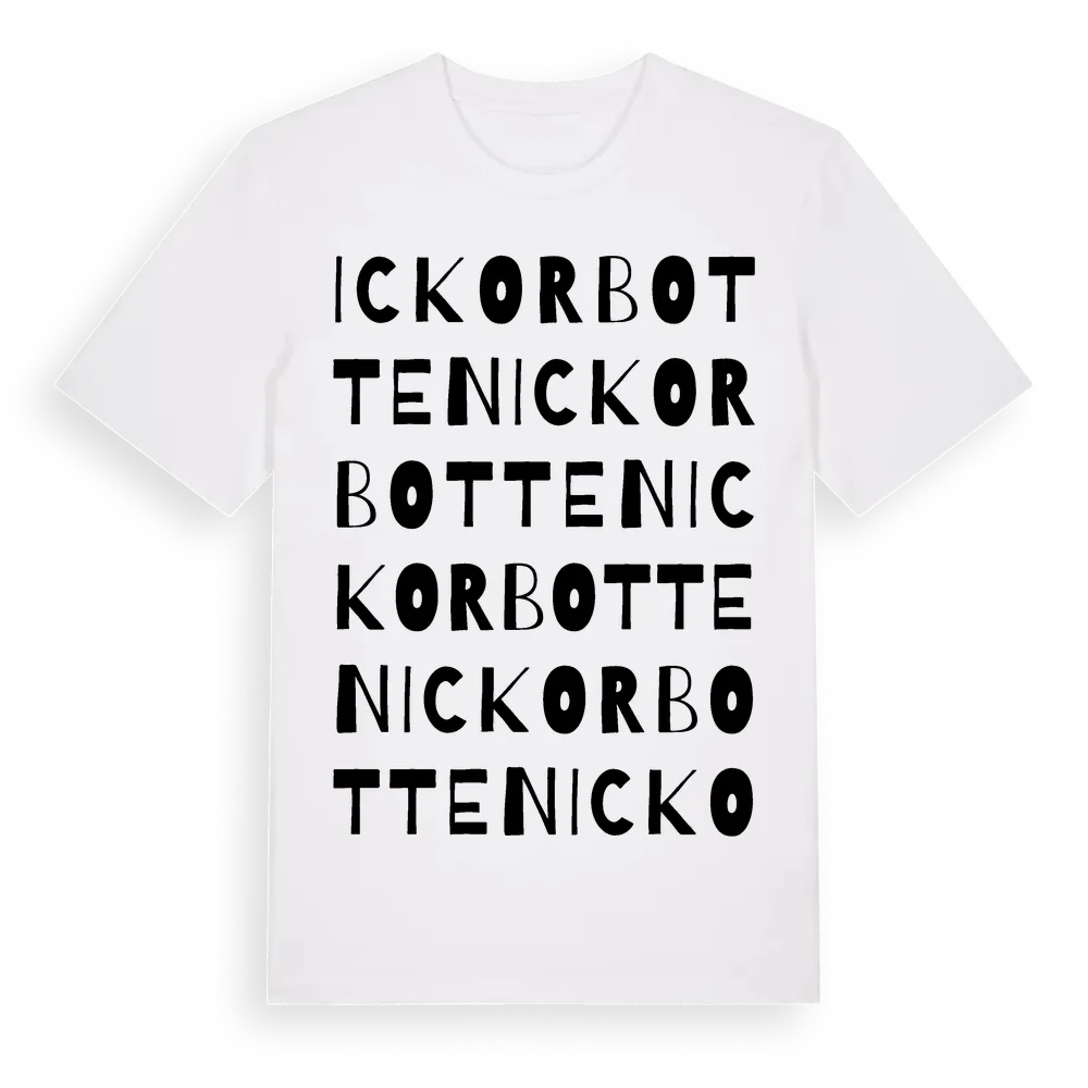 Ickorbotten ordlek t-shirt är inspirerad av byn Ickorbotten i Dalarnas län, Sverige. Tröjan är designad för dig som har en speciell koppling till platsen – oavsett om du bor här, har rötterna här eller bara älskar Ickorbotten.