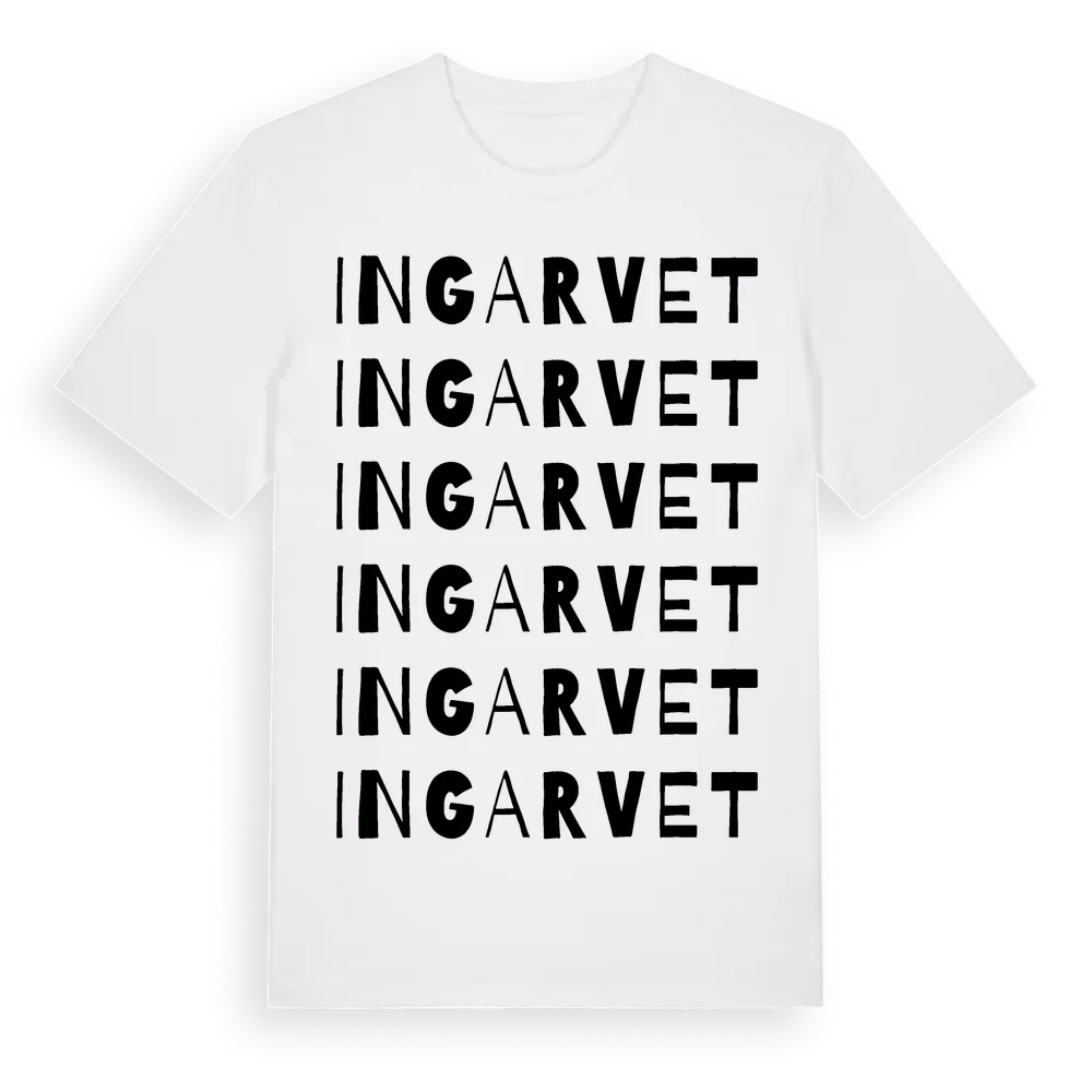 Ingarvet ordlek t-shirt är inspirerad av stadsdelen Ingarvet i Dalarnas län, Sverige. Tröjan är designad för dig som har en speciell koppling till platsen – oavsett om du bor här, har rötterna här eller bara älskar Ingarvet.