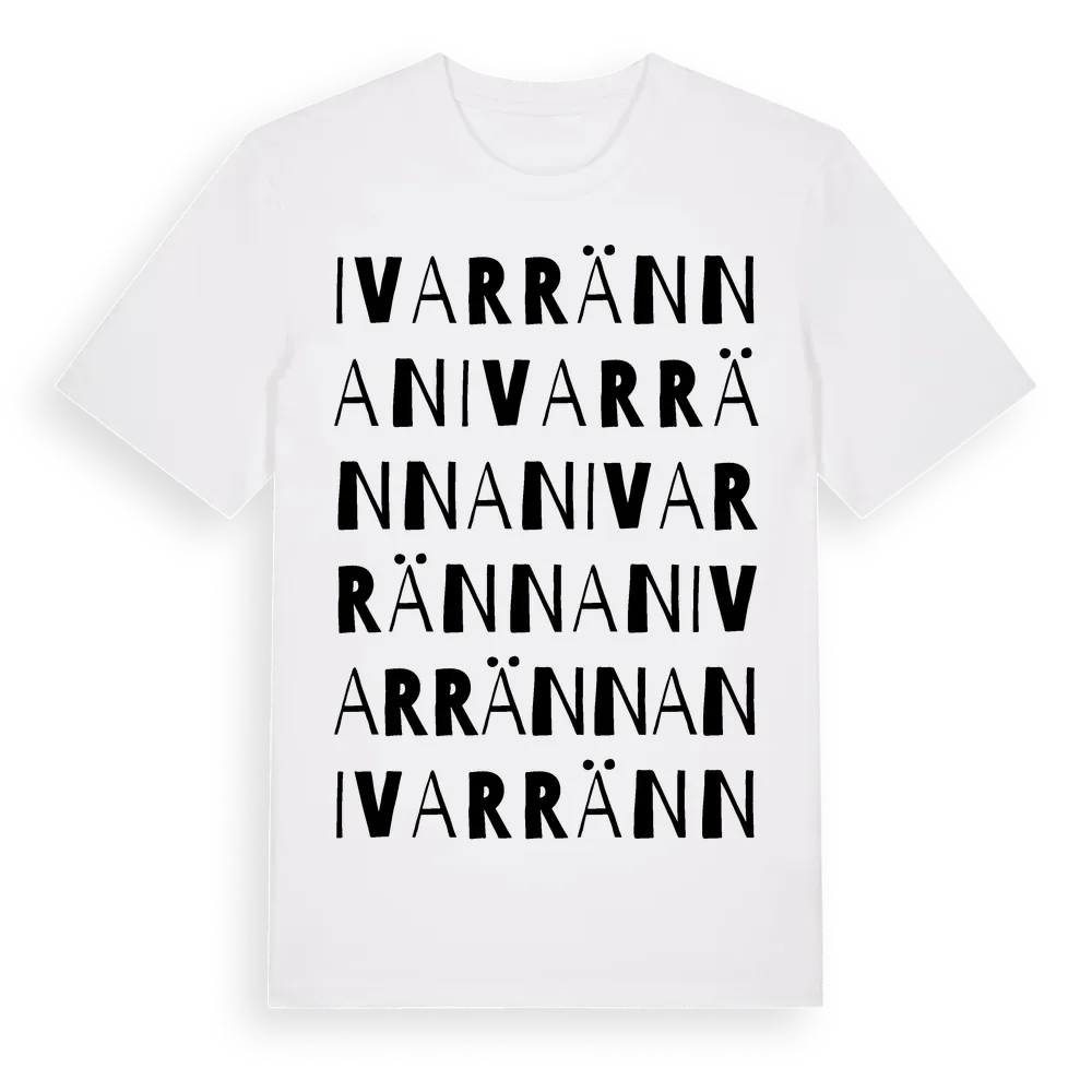 En ordlek byggd på Ivarrännans namn. Subtilt och klurig – ett motiv som bara de som verkligen känner platsen fullt ut förstår. Premium bomull, unisex – från Ivarrännan i Dalarnas län.