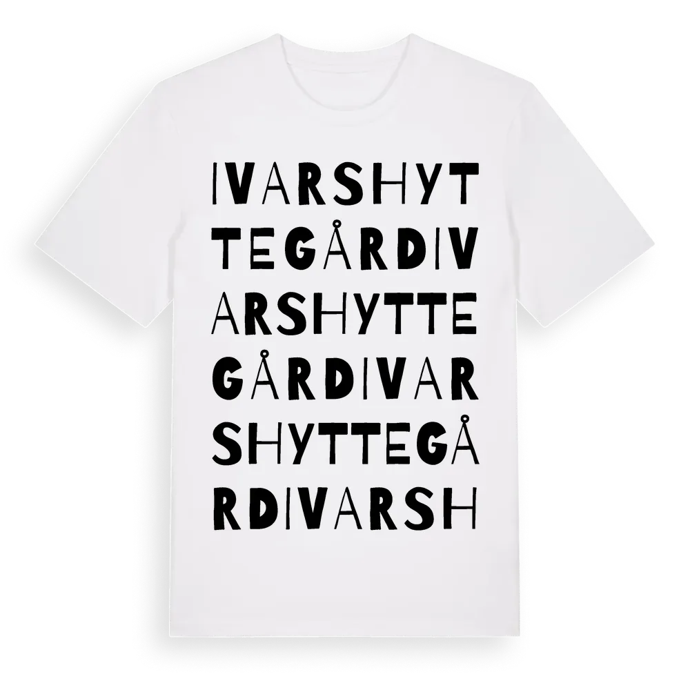 Ivarshyttegård ordlek t-shirt är inspirerad av Ivarshyttegård i Dalarnas län, Sverige. Tröjan är designad för dig som har en speciell koppling till platsen – oavsett om du bor här, har rötterna här eller bara älskar Ivarshyttegård.