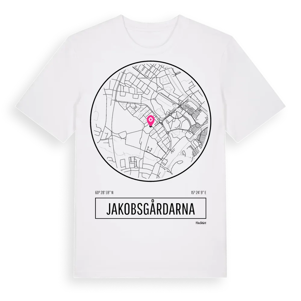Jakobsgårdarna t-shirt är inspirerad av stadsdelen Jakobsgårdarna i Dalarnas län, Sverige. Tröjan är designad för dig som har en speciell koppling till platsen – oavsett om du bor här, har rötterna här eller bara älskar Jakobsgårdarna.
