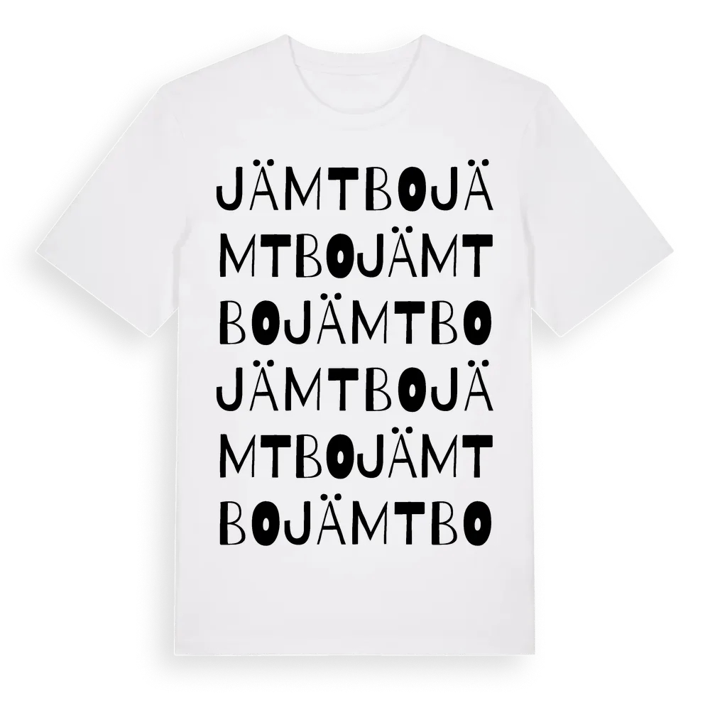 Jämtbo ordlek t-shirt är inspirerad av Jämtbo i Dalarnas län, Sverige. Tröjan är designad för dig som har en speciell koppling till platsen – oavsett om du bor här, har rötterna här eller bara älskar Jämtbo.