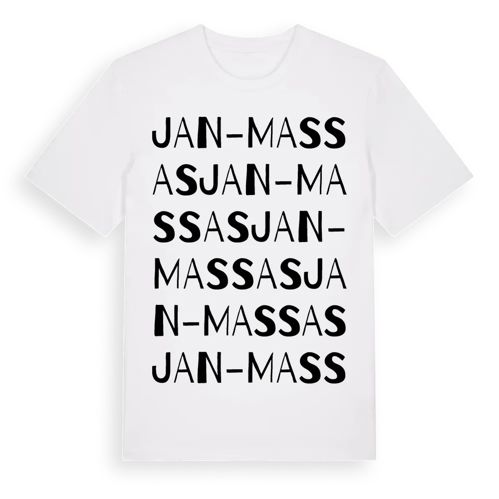 Jan-Massas ordlek t-shirt är inspirerad av Jan-Massas i Dalarnas län, Sverige. Tröjan är designad för dig som har en speciell koppling till platsen – oavsett om du bor här, har rötterna här eller bara älskar Jan-Massas.