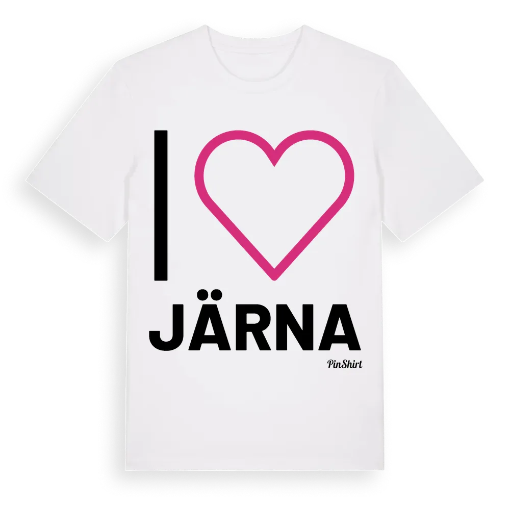 Jag älskar Järna t-shirt stort tryck är inspirerad av byn Järna i Dalarnas län, Sverige. Tröjan är designad för dig som har en speciell koppling till platsen – oavsett om du bor här, har rötterna här eller bara älskar Järna.