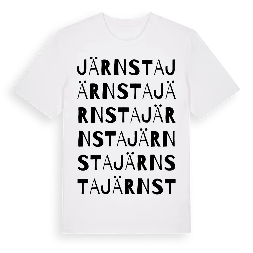 Järnsta ordlek t-shirt är inspirerad av byn Järnsta i Dalarnas län, Sverige. Tröjan är designad för dig som har en speciell koppling till platsen – oavsett om du bor här, har rötterna här eller bara älskar Järnsta.