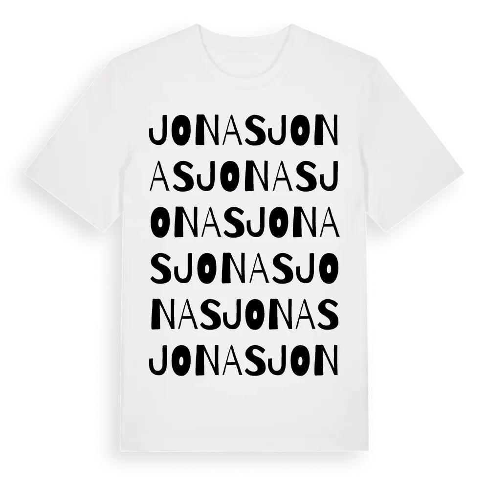 Jonas ordlek t-shirt är inspirerad av Jonas i Dalarnas län, Sverige. Tröjan är designad för dig som har en speciell koppling till platsen – oavsett om du bor här, har rötterna här eller bara älskar Jonas.