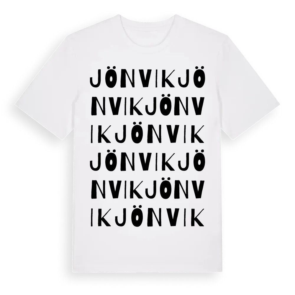 Jönvik ordlek t-shirt är inspirerad av byn Jönvik i Dalarnas län, Sverige. Tröjan är designad för dig som har en speciell koppling till platsen – oavsett om du bor här, har rötterna här eller bara älskar Jönvik.