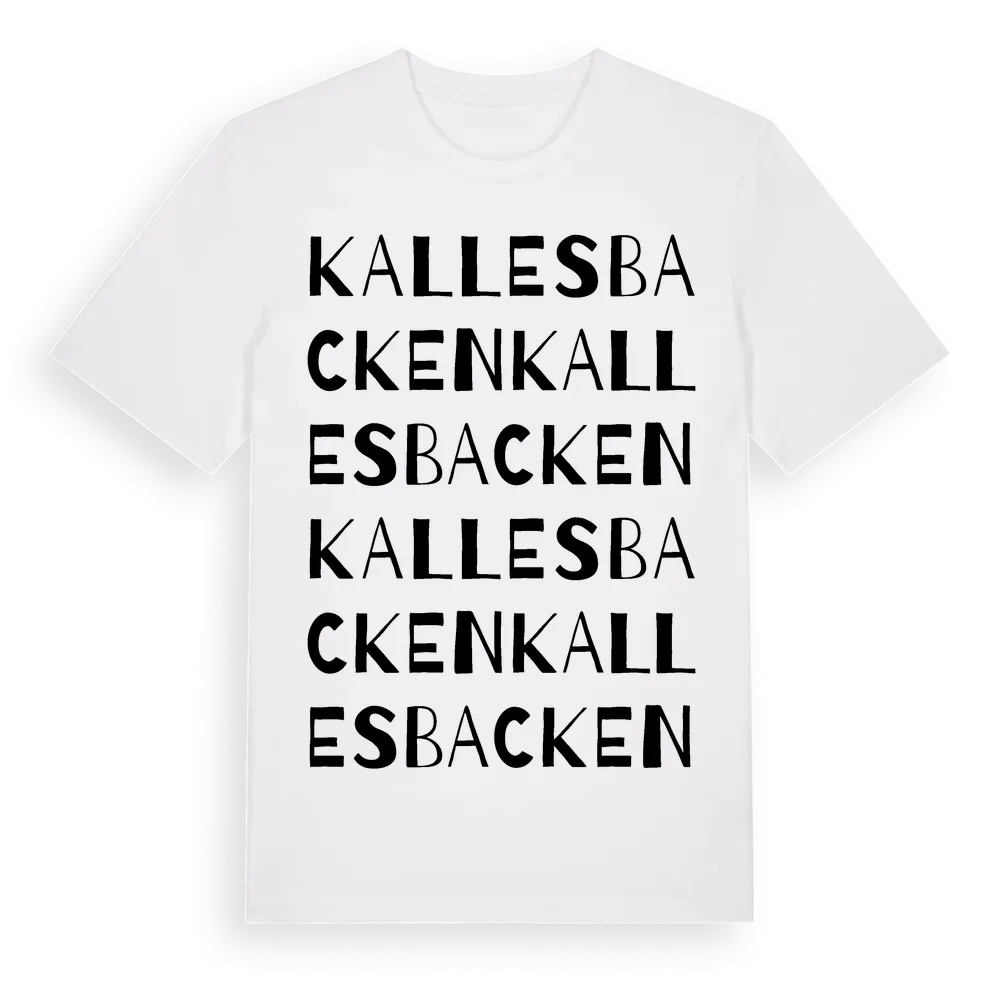 En ordlek byggd på Kallesbackens namn. Subtilt och klurig – ett motiv som bara de som verkligen känner platsen fullt ut förstår. Premium bomull, unisex – från byn Kallesbacken i Dalarnas län.