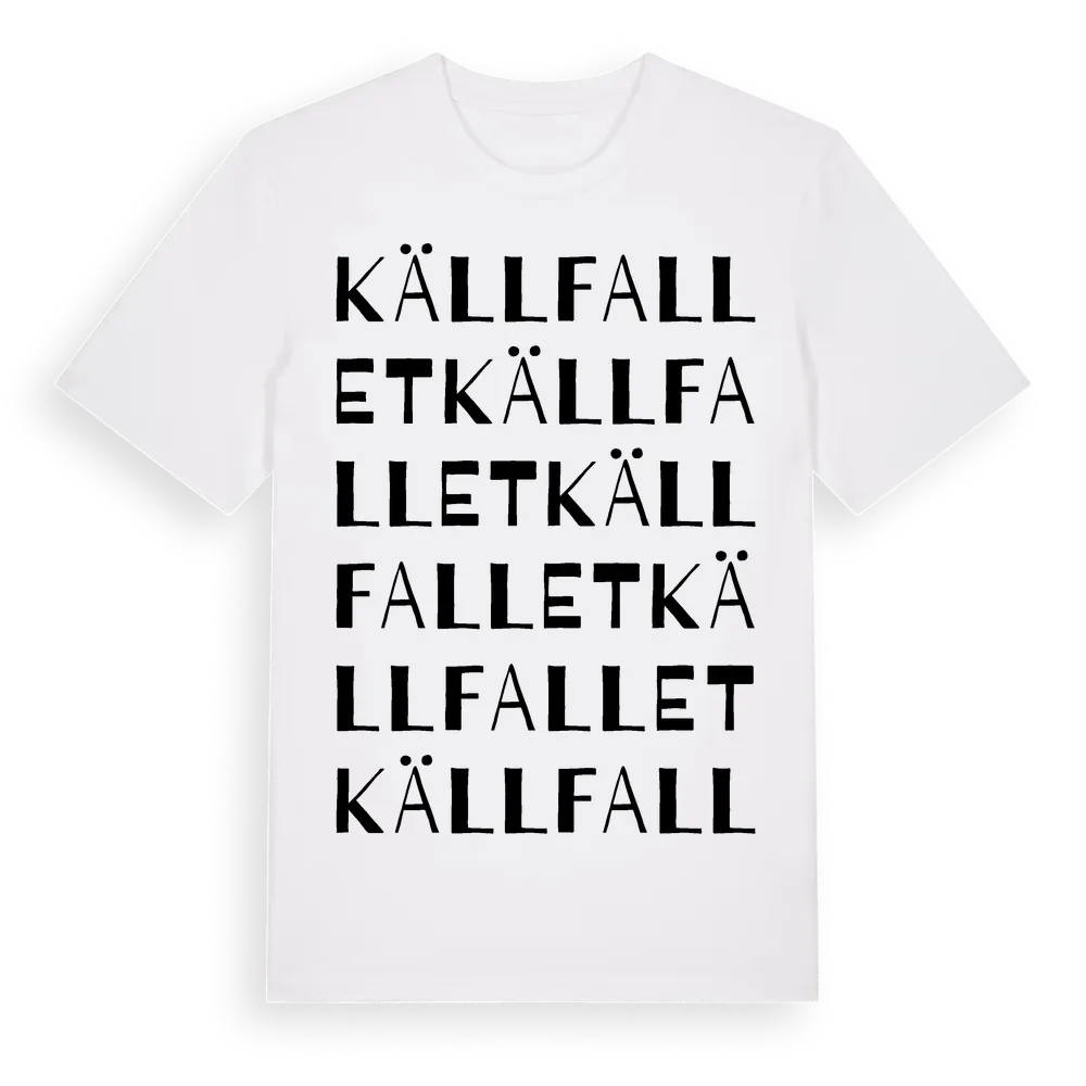 En ordlek byggd på Källfallets namn. Subtilt och klurig – ett motiv som bara de som verkligen känner platsen fullt ut förstår. Premium bomull, unisex – från Källfallet i Dalarnas län.