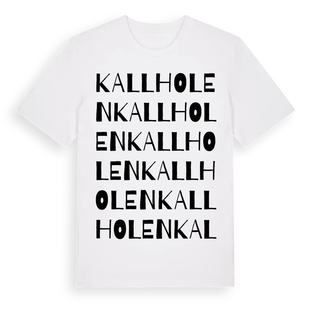 En ordlek byggd på Kallholens namn. Subtilt och klurig – ett motiv som bara de som verkligen känner platsen fullt ut förstår. Premium bomull, unisex – från byn Kallholen i Dalarnas län.