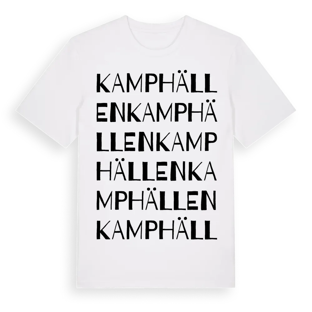Kamphällen ordlek t-shirt är inspirerad av Kamphällen i Dalarnas län, Sverige. Tröjan är designad för dig som har en speciell koppling till platsen – oavsett om du bor här, har rötterna här eller bara älskar Kamphällen.
