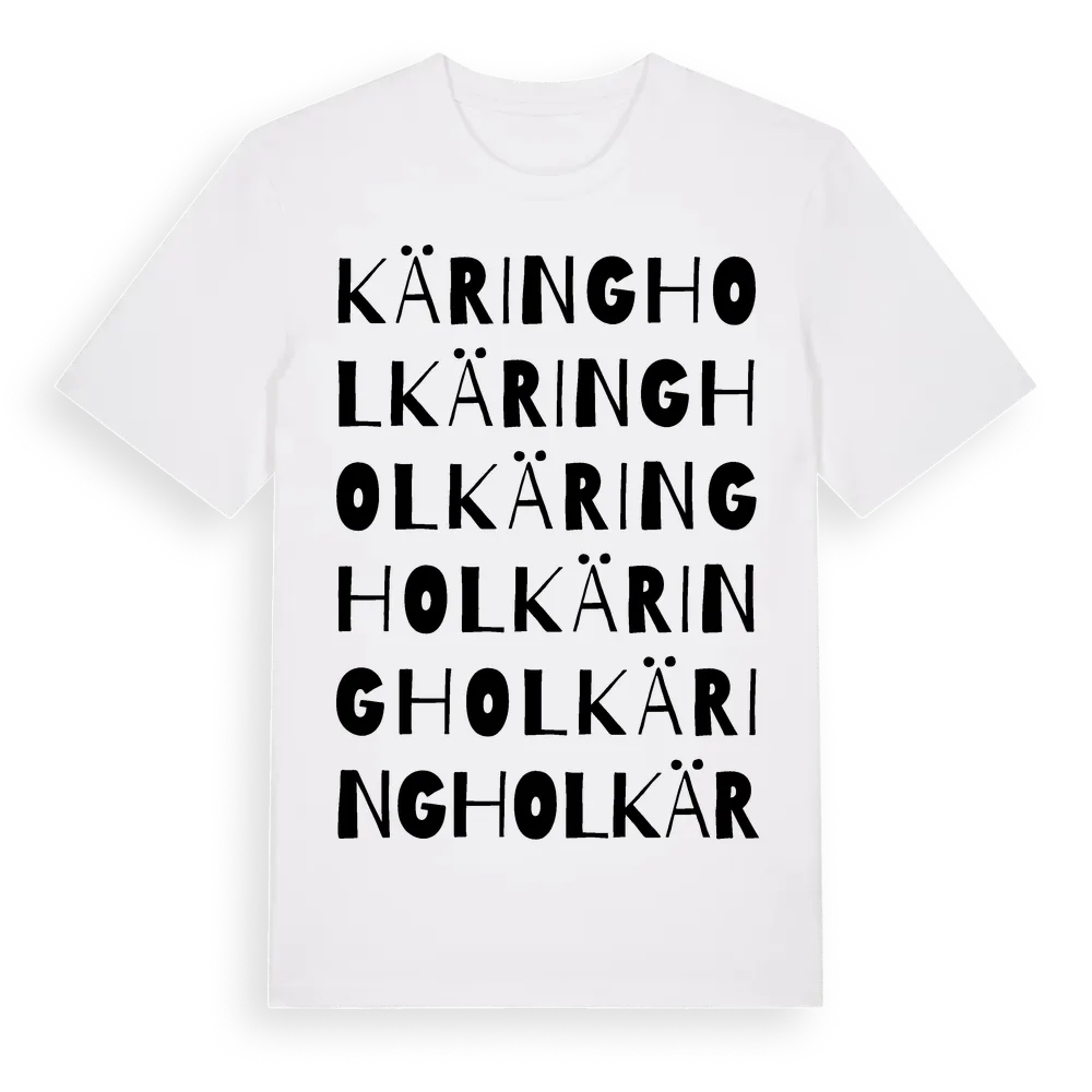 Käringhol ordlek t-shirt är inspirerad av Käringhol i Dalarnas län, Sverige. Tröjan är designad för dig som har en speciell koppling till platsen – oavsett om du bor här, har rötterna här eller bara älskar Käringhol.