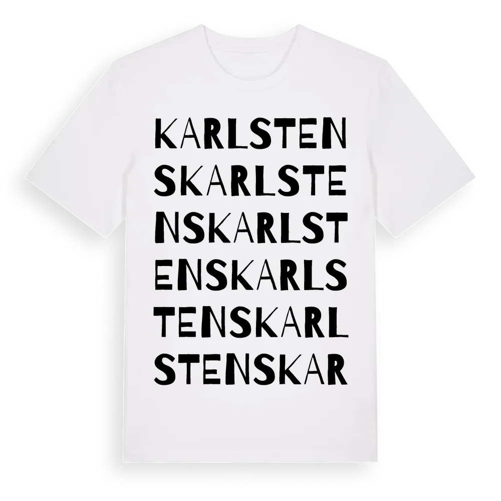 Karlstens ordlek t-shirt är inspirerad av Karlstens i Dalarnas län, Sverige. Tröjan är designad för dig som har en speciell koppling till platsen – oavsett om du bor här, har rötterna här eller bara älskar Karlstens.