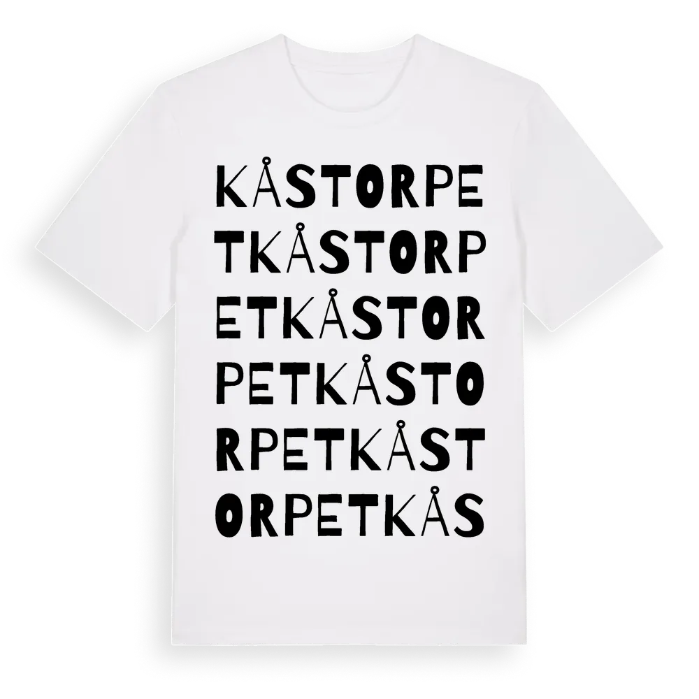 Kåstorpet ordlek t-shirt är inspirerad av Kåstorpet i Dalarnas län, Sverige. Tröjan är designad för dig som har en speciell koppling till platsen – oavsett om du bor här, har rötterna här eller bara älskar Kåstorpet.