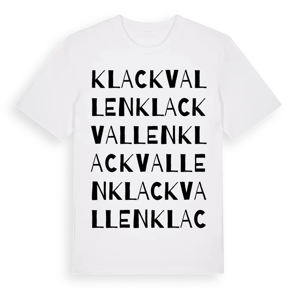 Klackvallen ordlek t-shirt är inspirerad av Klackvallen i Dalarnas län, Sverige. Tröjan är designad för dig som har en speciell koppling till platsen – oavsett om du bor här, har rötterna här eller bara älskar Klackvallen.