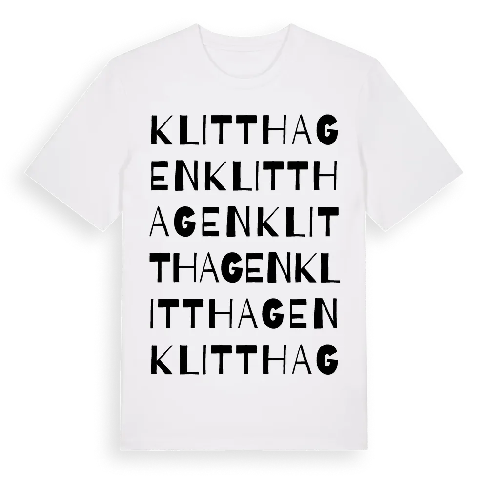 Klitthagen ordlek t-shirt är inspirerad av Klitthagen i Dalarnas län, Sverige. Tröjan är designad för dig som har en speciell koppling till platsen – oavsett om du bor här, har rötterna här eller bara älskar Klitthagen.