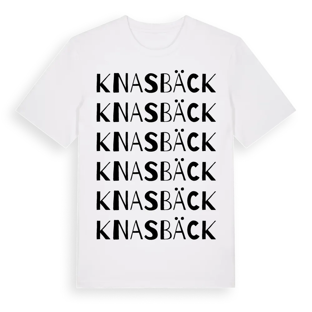 Knasbäck ordlek t-shirt är inspirerad av Knasbäck i Dalarnas län, Sverige. Tröjan är designad för dig som har en speciell koppling till platsen – oavsett om du bor här, har rötterna här eller bara älskar Knasbäck.