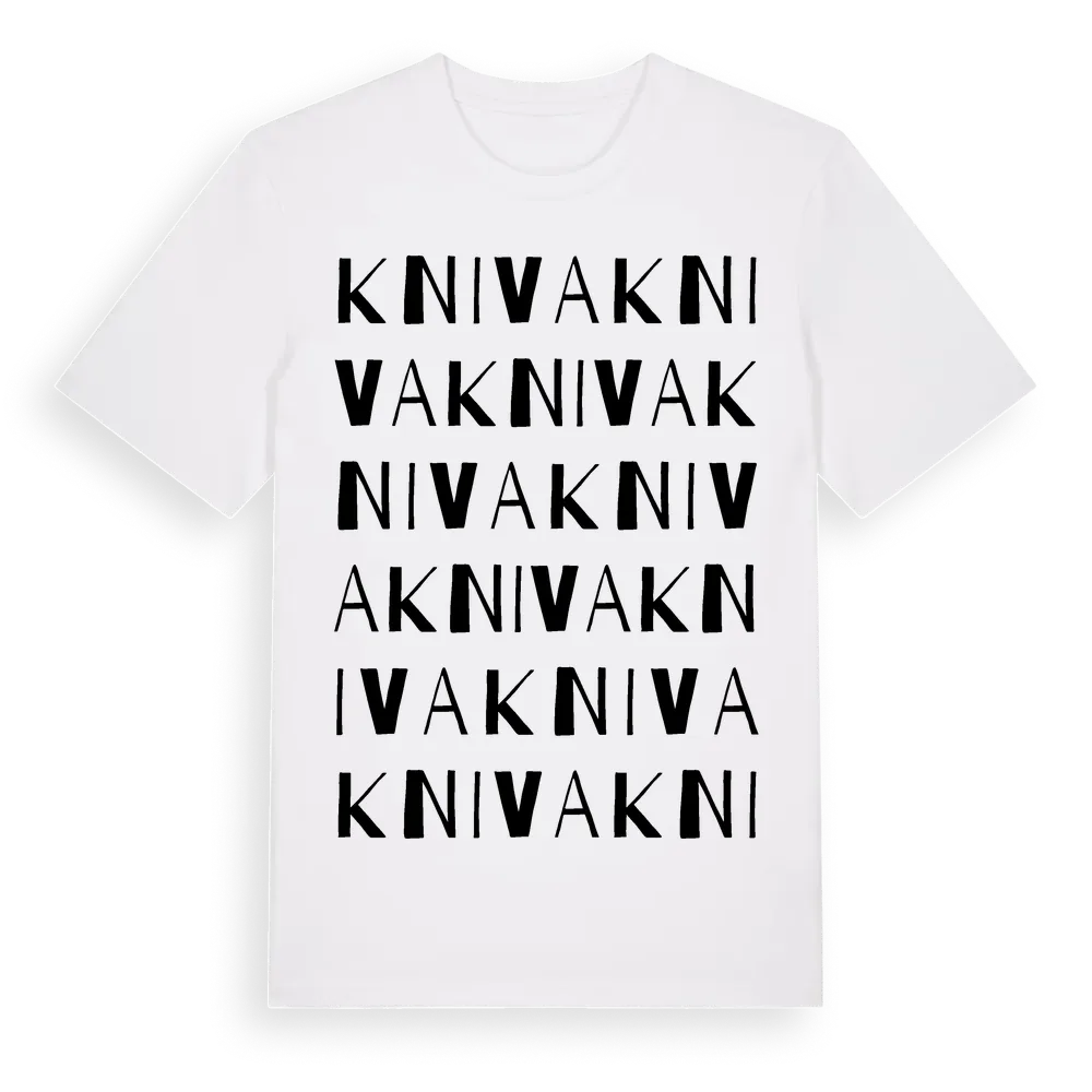 Kniva ordlek t-shirt är inspirerad av byn Kniva i Dalarnas län, Sverige. Tröjan är designad för dig som har en speciell koppling till platsen – oavsett om du bor här, har rötterna här eller bara älskar Kniva.