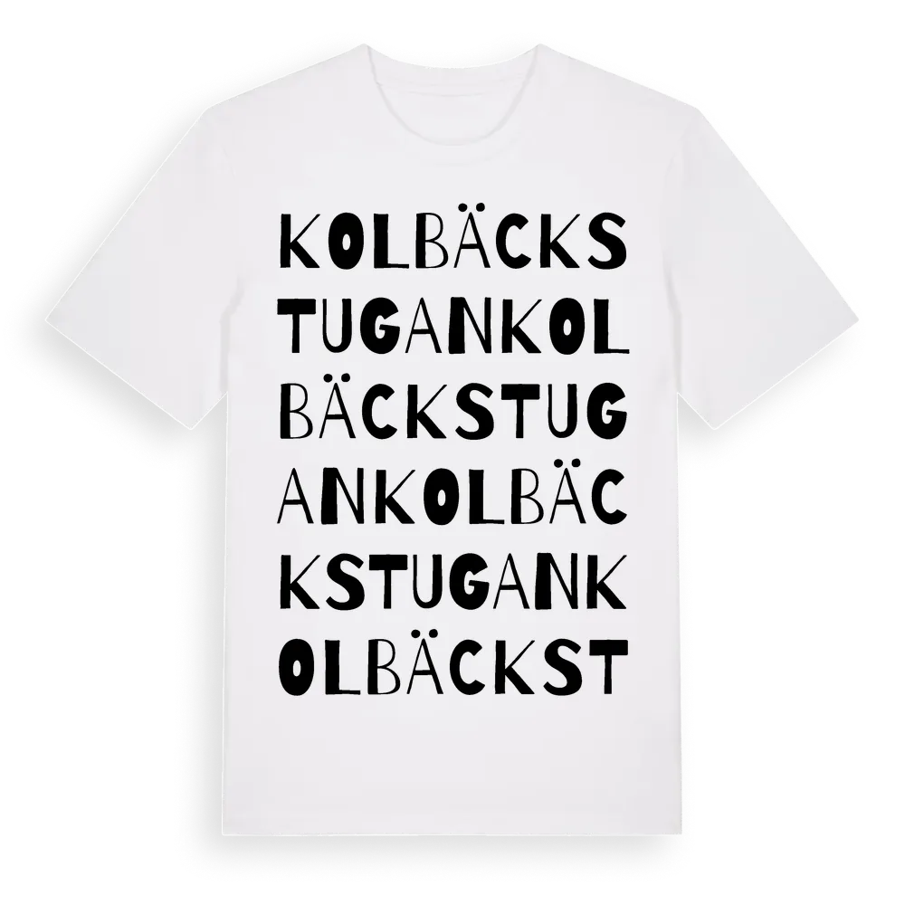 Kolbäckstugan ordlek t-shirt är inspirerad av Kolbäckstugan i Dalarnas län, Sverige. Tröjan är designad för dig som har en speciell koppling till platsen – oavsett om du bor här, har rötterna här eller bara älskar Kolbäckstugan.