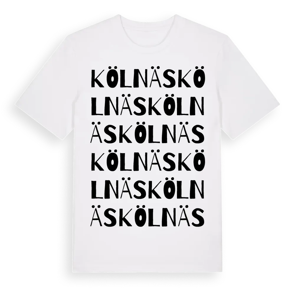 En ordlek byggd på Kölnäss namn. Subtilt och klurig – ett motiv som bara de som verkligen känner platsen fullt ut förstår. Premium bomull, unisex – från byn Kölnäs i Dalarnas län.