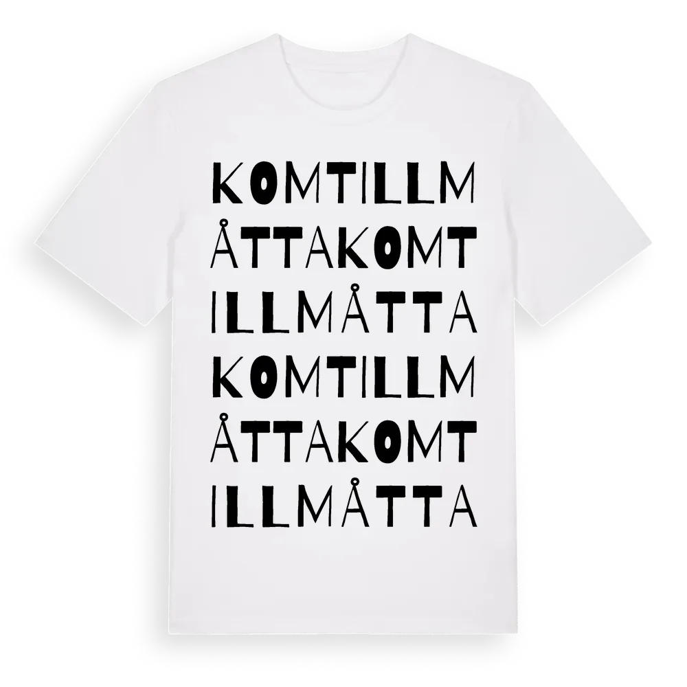 Komtillmåtta ordlek t-shirt är inspirerad av byn Komtillmåtta i Dalarnas län, Sverige. Tröjan är designad för dig som har en speciell koppling till platsen – oavsett om du bor här, har rötterna här eller bara älskar Komtillmåtta.