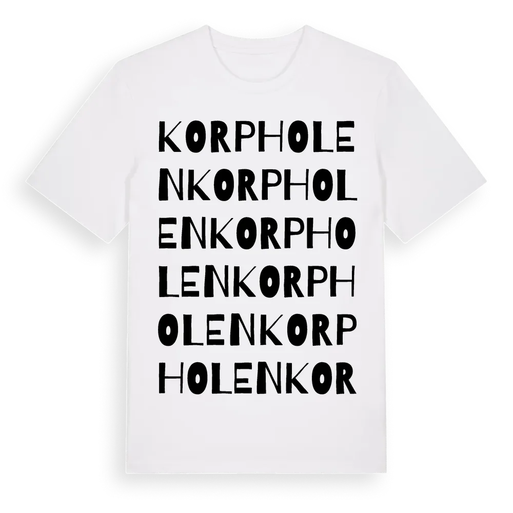 Korpholen ordlek t-shirt är inspirerad av byn Korpholen i Dalarnas län, Sverige. Tröjan är designad för dig som har en speciell koppling till platsen – oavsett om du bor här, har rötterna här eller bara älskar Korpholen.