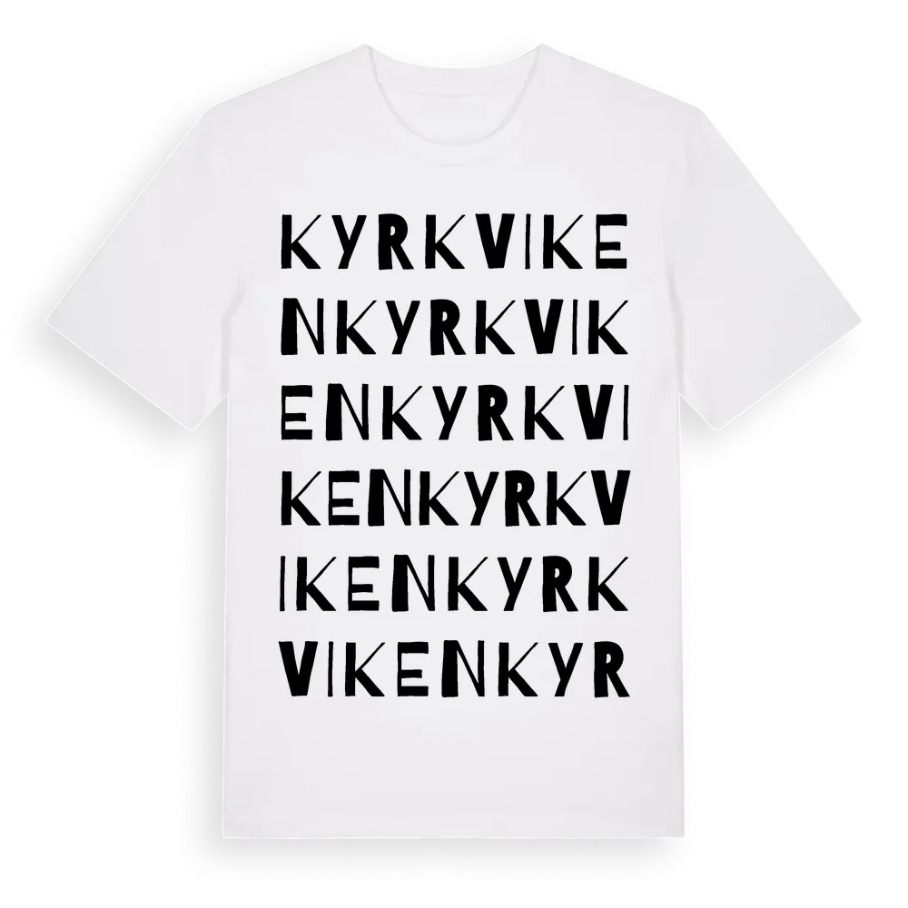 Kyrkviken ordlek t-shirt är inspirerad av byn Kyrkviken i Dalarnas län, Sverige. Tröjan är designad för dig som har en speciell koppling till platsen – oavsett om du bor här, har rötterna här eller bara älskar Kyrkviken.