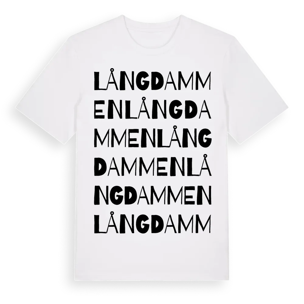 Långdammen ordlek t-shirt är inspirerad av Långdammen i Dalarnas län, Sverige. Tröjan är designad för dig som har en speciell koppling till platsen – oavsett om du bor här, har rötterna här eller bara älskar Långdammen.