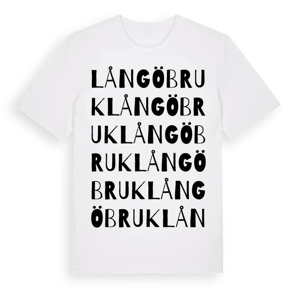 Långö Bruk ordlek t-shirt är inspirerad av byn Långö Bruk i Dalarnas län, Sverige. Tröjan är designad för dig som har en speciell koppling till platsen – oavsett om du bor här, har rötterna här eller bara älskar Långö Bruk.