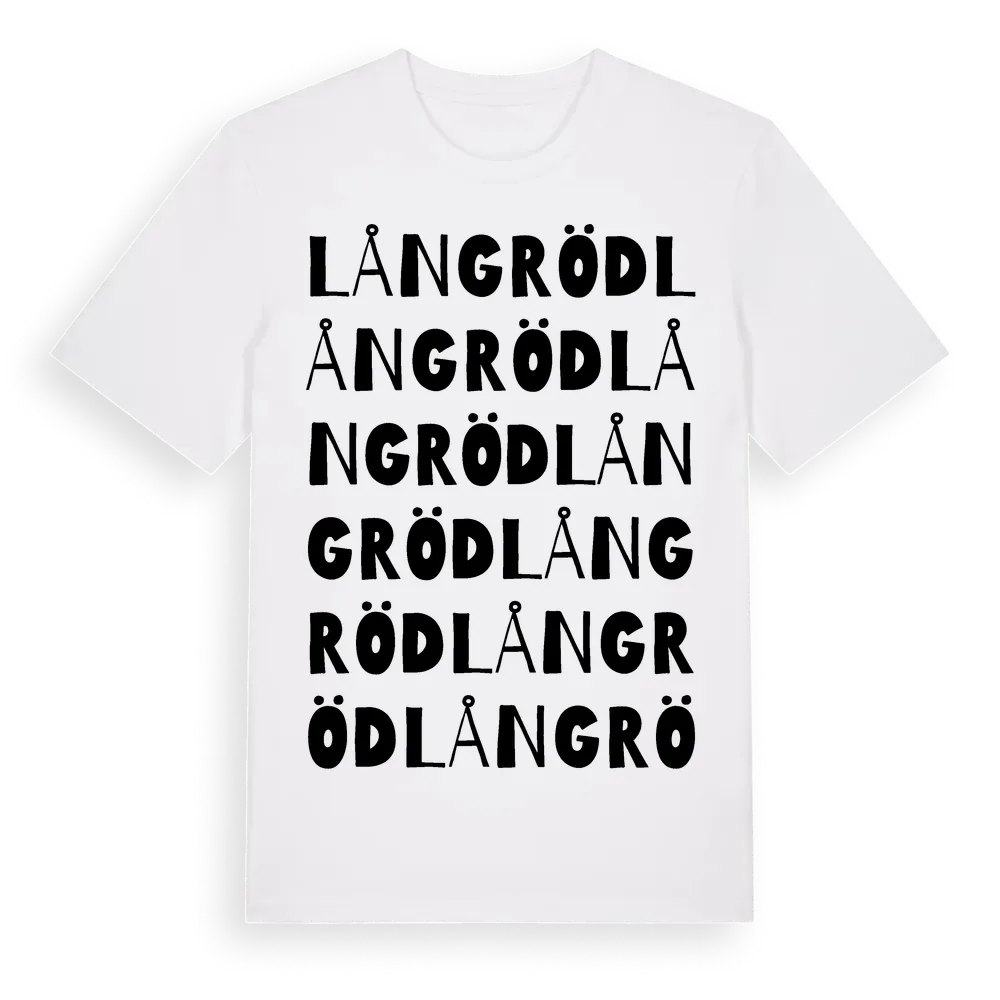Långröd ordlek t-shirt är inspirerad av Långröd i Dalarnas län, Sverige. Tröjan är designad för dig som har en speciell koppling till platsen – oavsett om du bor här, har rötterna här eller bara älskar Långröd.