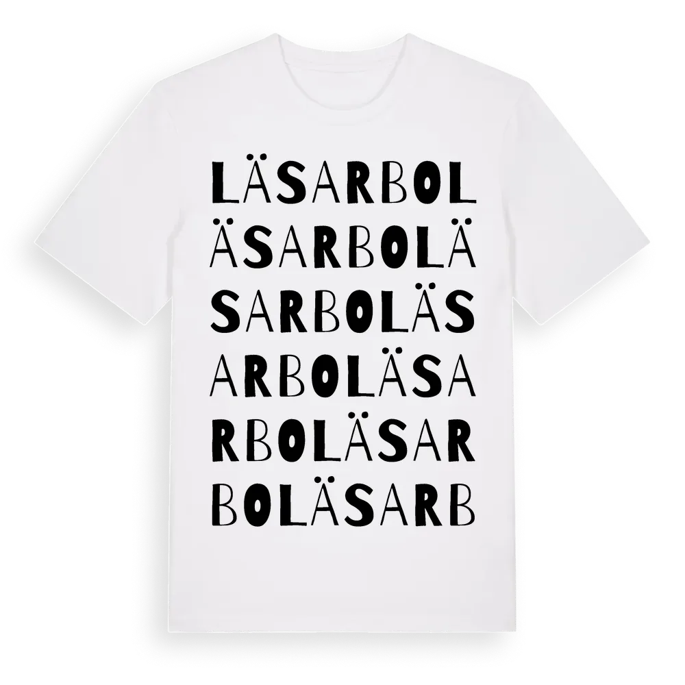 Läsarbo ordlek t-shirt är inspirerad av byn Läsarbo i Dalarnas län, Sverige. Tröjan är designad för dig som har en speciell koppling till platsen – oavsett om du bor här, har rötterna här eller bara älskar Läsarbo.