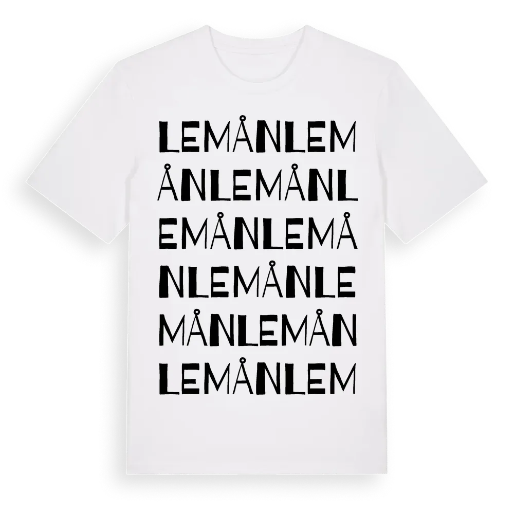 Lemån ordlek t-shirt är inspirerad av Lemån i Dalarnas län, Sverige. Tröjan är designad för dig som har en speciell koppling till platsen – oavsett om du bor här, har rötterna här eller bara älskar Lemån.