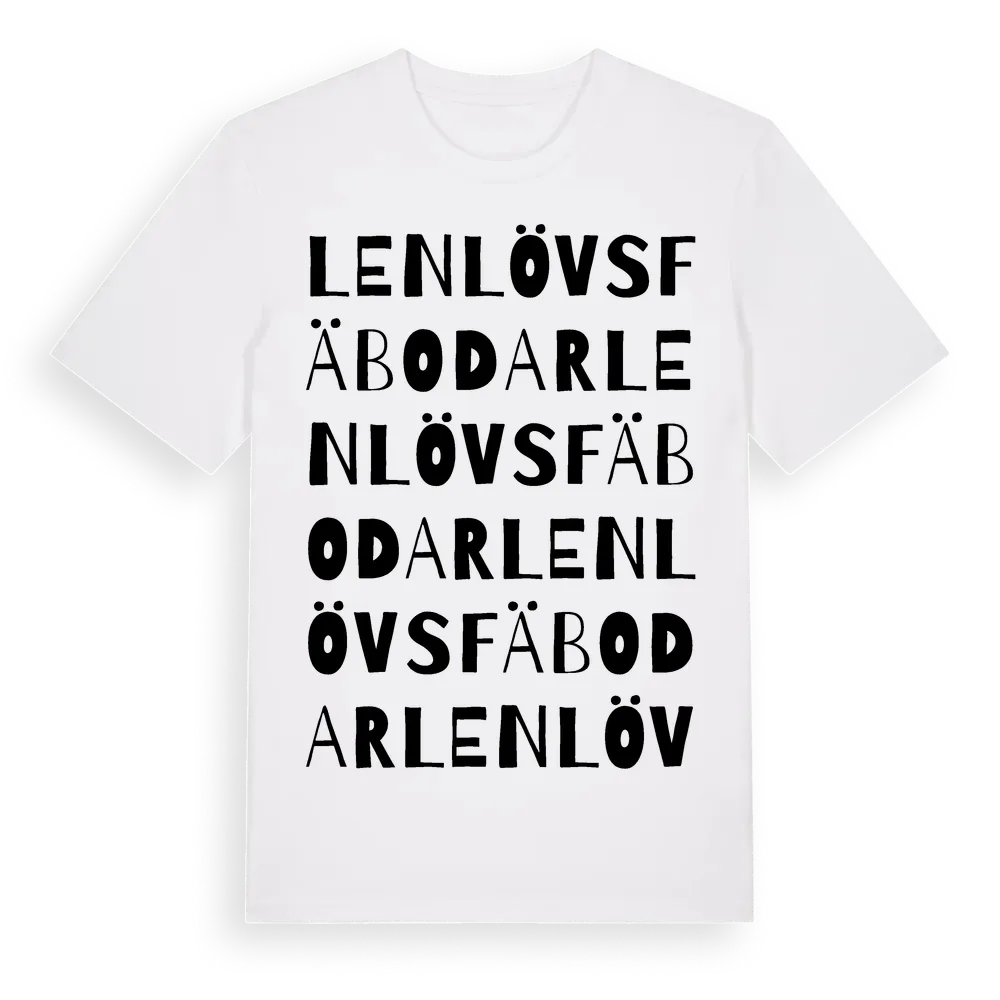 Lenlövs Fäbodar ordlek t-shirt är inspirerad av byn Lenlövs Fäbodar i Dalarnas län, Sverige. Tröjan är designad för dig som har en speciell koppling till platsen – oavsett om du bor här, har rötterna här eller bara älskar Lenlövs Fäbodar.