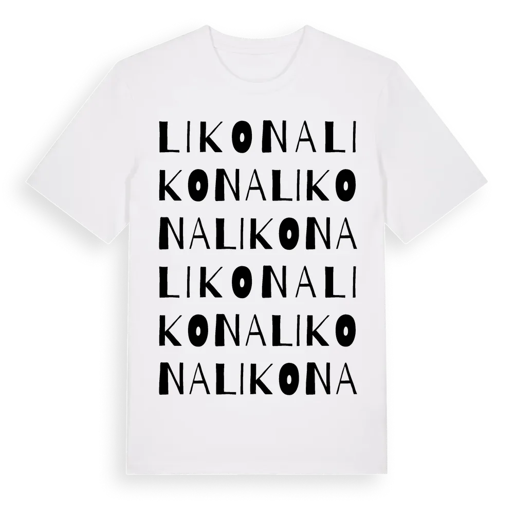 En ordlek byggd på Likonas namn. Subtilt och klurig – ett motiv som bara de som verkligen känner platsen fullt ut förstår. Premium bomull, unisex – från byn Likona i Dalarnas län.
