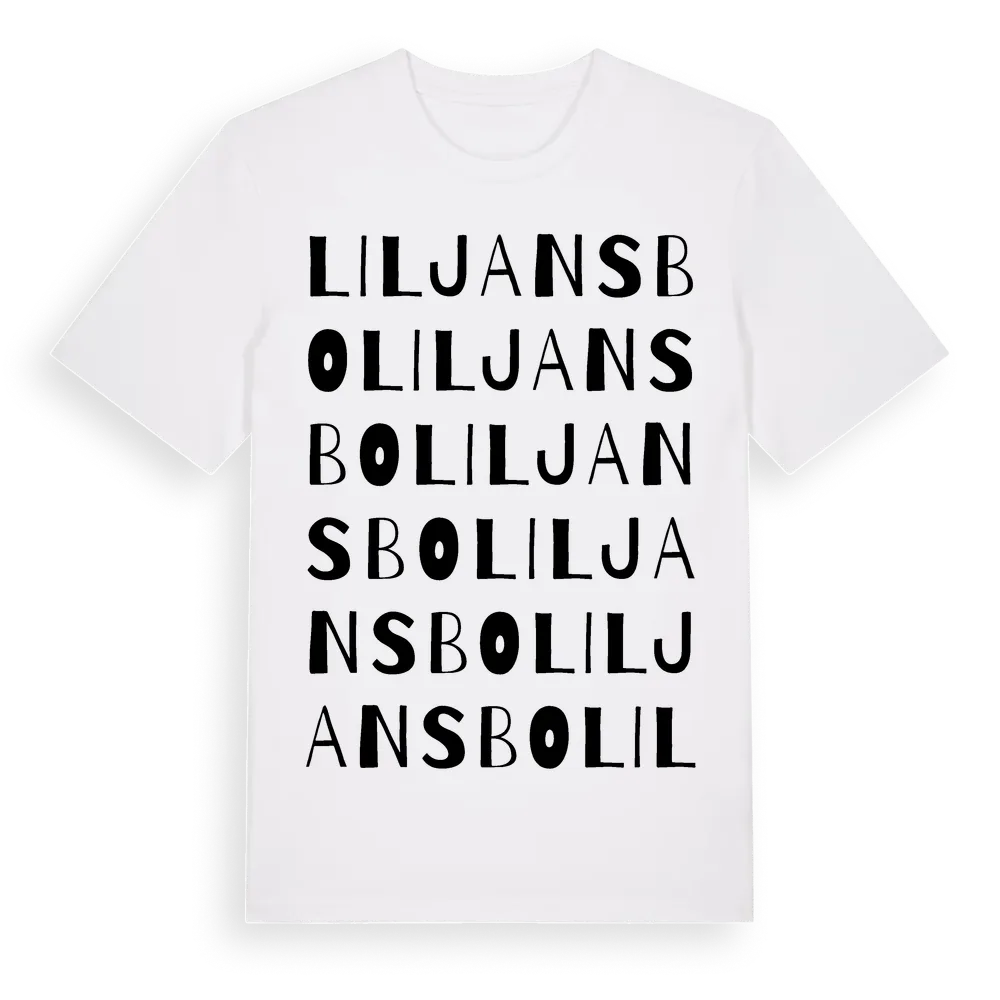 Liljansbo ordlek t-shirt är inspirerad av Liljansbo i Dalarnas län, Sverige. Tröjan är designad för dig som har en speciell koppling till platsen – oavsett om du bor här, har rötterna här eller bara älskar Liljansbo.