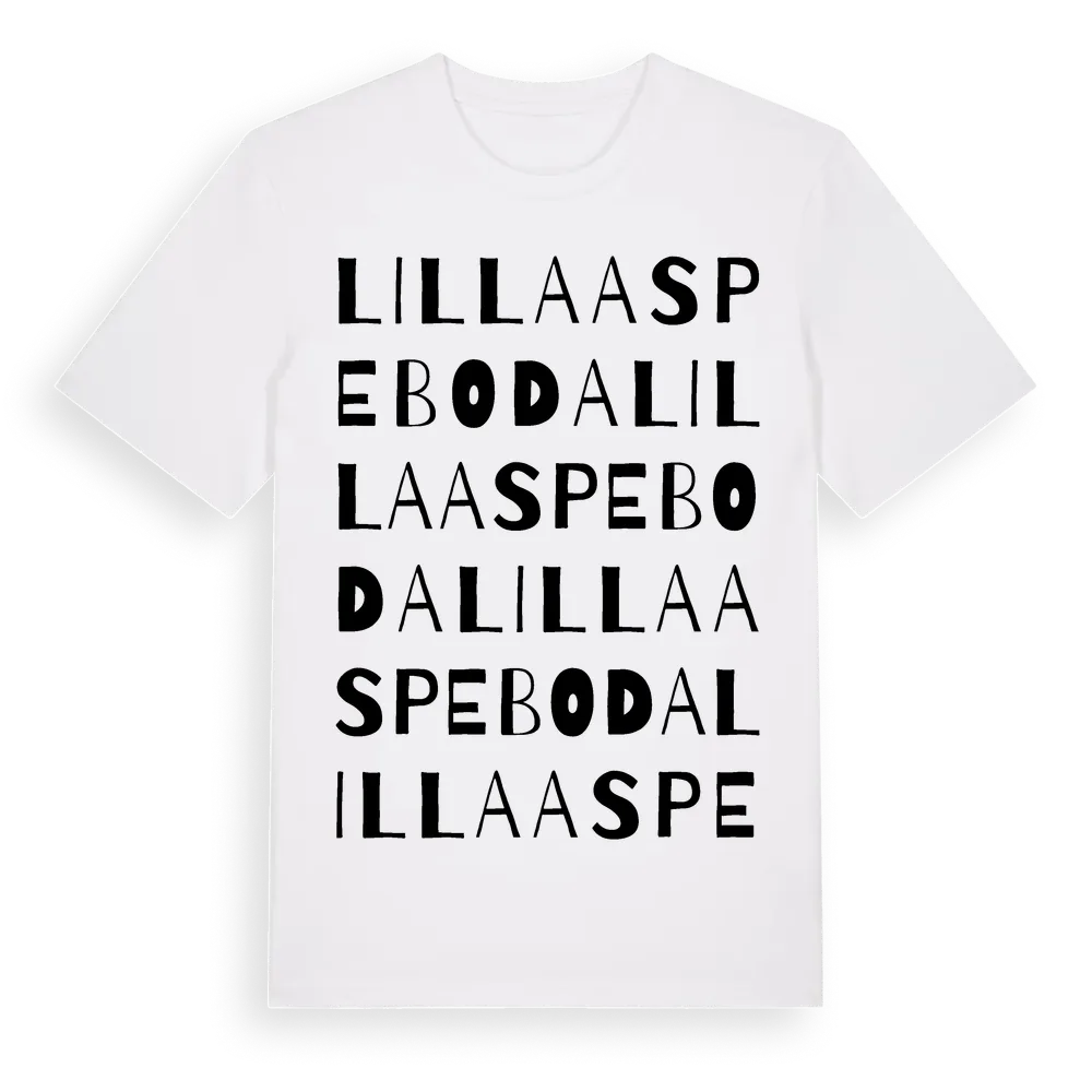 Lilla Aspeboda ordlek t-shirt är inspirerad av byn Lilla Aspeboda i Dalarnas län, Sverige. Tröjan är designad för dig som har en speciell koppling till platsen – oavsett om du bor här, har rötterna här eller bara älskar Lilla Aspeboda.
