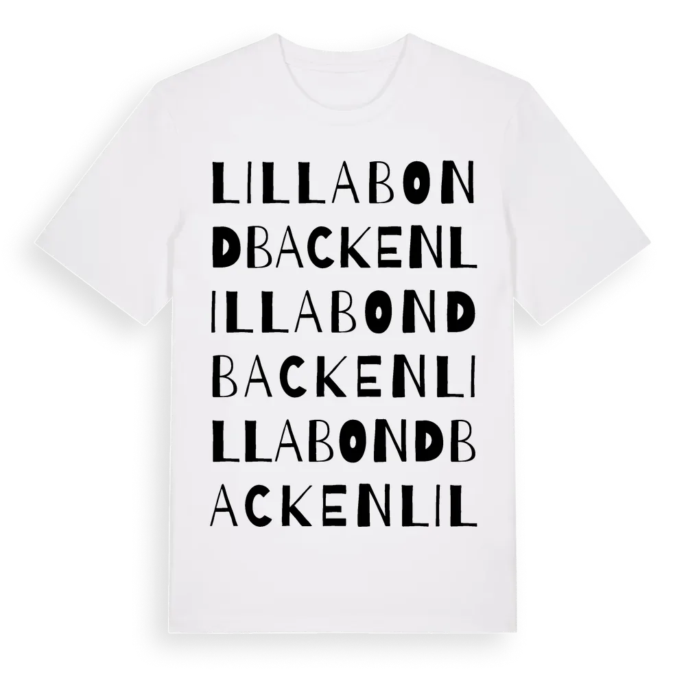 Lilla Bondbacken ordlek t-shirt är inspirerad av Lilla Bondbacken i Dalarnas län, Sverige. Tröjan är designad för dig som har en speciell koppling till platsen – oavsett om du bor här, har rötterna här eller bara älskar Lilla Bondbacken.
