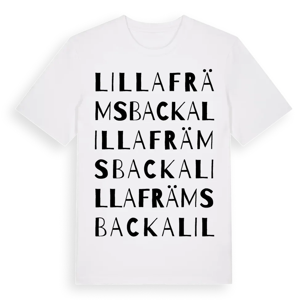 Lilla Främsbacka ordlek t-shirt är inspirerad av byn Lilla Främsbacka i Dalarnas län, Sverige. Tröjan är designad för dig som har en speciell koppling till platsen – oavsett om du bor här, har rötterna här eller bara älskar Lilla Främsbacka.
